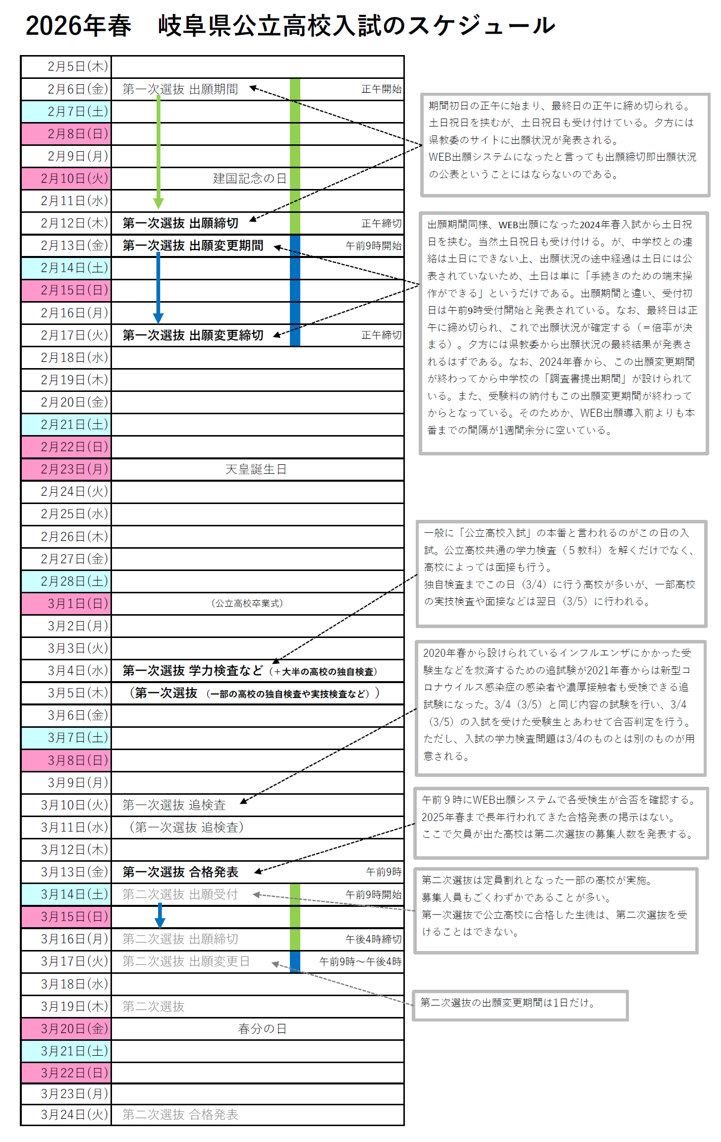 岐阜県教育委員会が来春2026年度(令和8年度)公立高校入試の日程を発表しました。